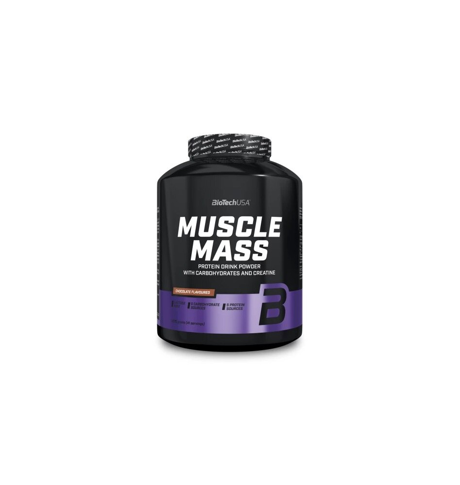 Muscle mass (4kg) de la marque Biotech USA est un hard gainer riche en glucides, protéines, créatine et peptides de glutamine.