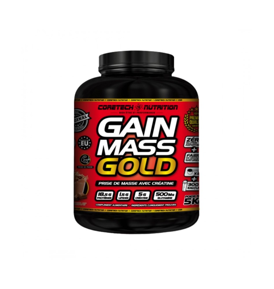 Le Gain Mass Gold est un gaineur en poudre à base de protéines et de glucides,il favorise l’augmentation de la masse musculaire. Avec de la Créatine pour aider au développement de la masse musculaire. Il permet un gain de force et de puissance.